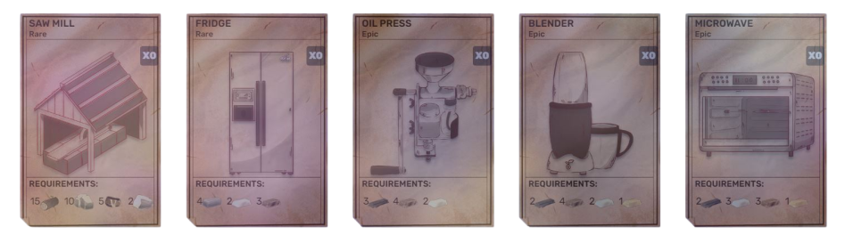 The [**cooking**](https://wiki.dcrops.com/dcrops-gameplay/cooking) and [**crafting**](https://wiki.dcrops.com/dcrops-gameplay/crafting-items) systems will need <mark style="background-color:orange;">**EQUIPMENTS**</mark> which are basically crafting stations to craft various items. These equipment will be available in the form of blueprints. These blueprints will be combined with land and resources to build the product. You can build your Equipment in [**Construction**](https://wiki.dcrops.com/dcrops-gameplay/construction).